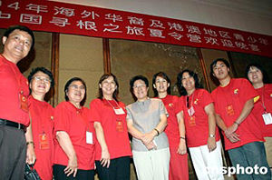 七月二十七日晚,國務院僑辦主任陳玉杰在北京國賓酒店《中國尋根之旅夏令營》領(lǐng)隊歡迎宴會上強調(diào);國僑辦將加大華文教育工作力度。圖為陳玉杰主任與領(lǐng)隊們合影留念。中新社記者:史利