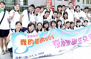 二○○四年七月二十八日,首屆“我的祖國——京港澳學(xué)生交流營2004”在北京語言大學(xué)拉開帷幕。來自香港、澳門的二百名學(xué)生與北京的一百名學(xué)生代表將共同參加為期一周的交流活動。圖為來自香港、澳門、北京的學(xué)生代表在開營儀式上合影留念。中新社記者:張勤