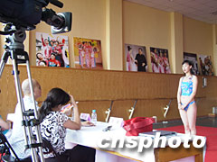 炎炎夏日中,位于北京舞蹈學(xué)院的初試賽場似乎令人感覺清涼。上百名青春佳麗身著泳裝,落落大方秀出自己的曼妙身材;但更重要的是,她們需要依次通過短短一分鐘的自我介紹,在談吐舉止中展示自己的內(nèi)在美。