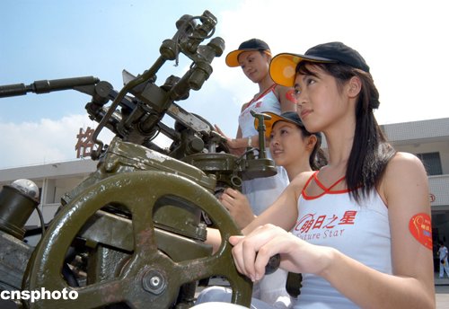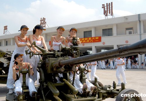 第五屆“明日之星”浪奇杯影視新星大賽的六十多名帥哥美女,八月一日到廣東預(yù)備役高炮師接受軍事訓(xùn)練。作者:劉衛(wèi)勇