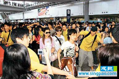 S.H.E的歌迷人數(shù)眾多,成功搶鏡。而其他歌手的Fans則以Energy較多,數(shù)目亦過百人,Energy四名成員分別步出機(jī)場,由于每個(gè)成員均被Fans圍住,不停要求拍照及送禮物等,短短兩、三分鐘路程也要十分鐘才走到停車場。