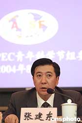 第三屆亞太經合組織青年科學節(jié)(3rd APEC Youth Science Festival)新聞發(fā)布會八月二日在北京八十中學召開。本屆青年科學節(jié)是首次在中國舉辦的將科技主題與青少年主題結合的大型APEC活動,由科技部、教育部、中國科協(xié)、共青團中央和北京市政府共同主辦。APEC組織中的十四個成員經濟體和澳門將派代表團參加為期一周的活動。北京市政府副秘書長、組委會副秘書長張建東介紹情況。作者:徐曦弋