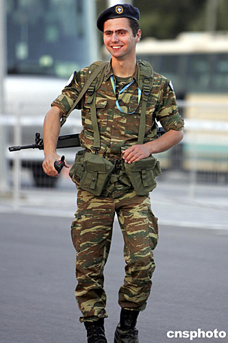 奧運(yùn)村門(mén)外,希臘大兵持著移動(dòng)電話仍聊得興高采烈,笑容更加燦爛。也許,大兵的笑容與自信能夠保持得更為長(zhǎng)遠(yuǎn)持久,直到奧運(yùn)會(huì)結(jié)束,直到永遠(yuǎn)……(完)