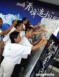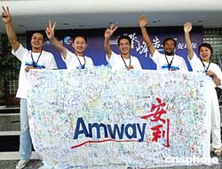 國家環(huán)保局九月將舉行“登峰造極”清掃珠穆朗瑪峰大型環(huán);顒樱怖(中國)日用品公司,八月四日在新疆安利營銷人員中舉行為中國環(huán)保做貢獻簽名活動。中新社記者:宋吉河