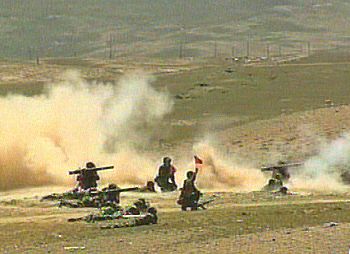 然而,“恐怖分子”試圖頑抗到底,繼續(xù)向聯(lián)合部隊開槍射擊。喊話無效,聯(lián)合指揮所當即決定實行火力打擊,實兵演練進入第二階段。命令一出,霎時,爆炸聲震耳欲聾,炮彈群雨點般落在“恐怖分子”藏匿的各個高地,硝煙四起,火焰沖天。煙火中,幾名“恐怖分子”四處突圍,被中方部隊各個擊斃。