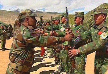 這是中國和巴基斯坦武裝力量6日在新疆塔什庫爾干縣舉行的首次聯(lián)合反恐軍事演習中的一幕。中國人民解放軍新疆軍區(qū)駐塔什庫爾干縣邊防部隊和巴基斯坦邊防部隊官兵200余人參加了這次非傳統(tǒng)安全領(lǐng)域的合作演習。參加演習的中巴雙方軍隊都有著豐富的反恐經(jīng)驗。巴基斯坦邊防部隊經(jīng)過多次反恐作戰(zhàn)的洗禮,實戰(zhàn)經(jīng)驗極為豐富,他們戰(zhàn)術(shù)技術(shù)精湛,作風勇敢頑強,軍事素質(zhì)過硬,有很強反恐作戰(zhàn)能力。