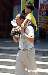 八月八日是臺灣父親節(jié)。圖為一名父親帶著小兒子,前往臺灣師范大學(xué)體育館為正在參加圍棋比賽的長子加油。作者:董會峰