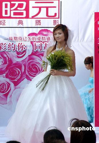8月8日,一些婚紗影樓公司在鄭州市二七廣場附近大搞促銷活動,迎接十一前后的結(jié)婚高峰的到來。 作者:馬健