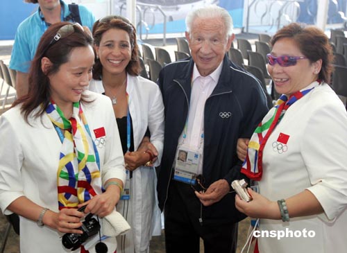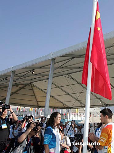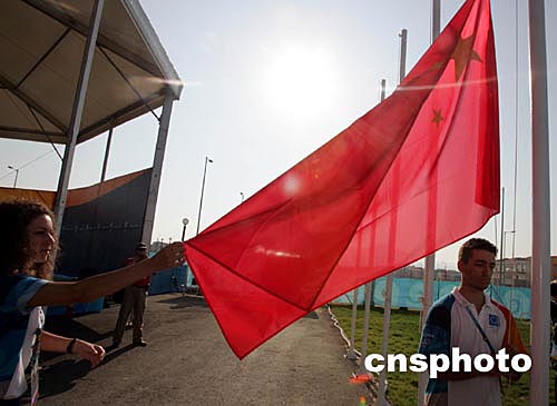 中新社雅典八月九日電 雅典今天天氣晴朗,北京時(shí)間下午兩點(diǎn),中國奧運(yùn)代表團(tuán)升旗儀式在奧運(yùn)村內(nèi)準(zhǔn)時(shí)舉行,前任國際奧委會主席薩馬蘭奇和中國代表團(tuán)的一百多名團(tuán)員參加了儀式。