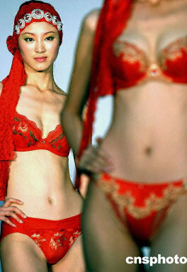 近日在北京舉行的旨在展示中國當(dāng)?shù)貎?nèi)衣發(fā)展趨勢的時(shí)裝秀上,T型臺上盡現(xiàn)東方嫵媚新視點(diǎn)。