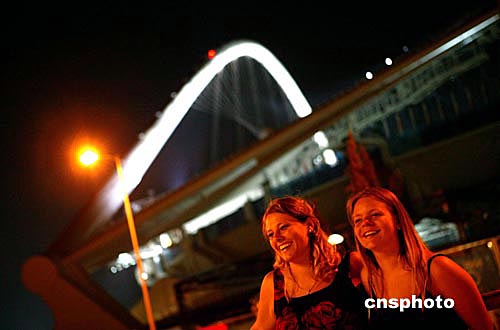 德國(guó)女生瑪瑞亞和克瑞斯汀那9日晚專程趕到雅典奧運(yùn)會(huì)主體育場(chǎng)前拍照留念,盡管她們無法支付昂貴的入場(chǎng)券,但是雅典一游已經(jīng)圓了她們的奧運(yùn)夢(mèng)。中新社記者:王瑤