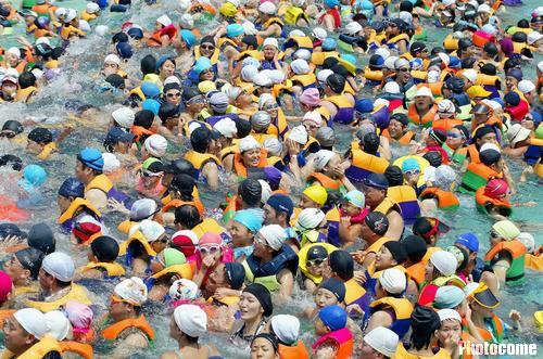 中新網(wǎng)8月11日電 據(jù)法新社消息,2004年8月0日,韓國迎來了10年來的最高氣溫35攝氏度,人們紛紛前來游樂園中的游泳池避暑,造成這里人滿為患的景象。(固山)