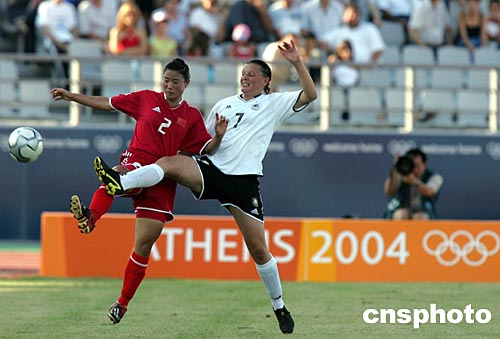 雅典奧運(yùn)會(huì)女足比賽當(dāng)?shù)貢r(shí)間11日先燃戰(zhàn)火。在晚間舉行的本屆雅典奧運(yùn)會(huì)女子足球小組賽F組的比賽中,曾經(jīng)的“鏗鏘玫瑰”中國(guó)女足,首戰(zhàn)不敵世界冠軍德國(guó)隊(duì),以0比8罕見(jiàn)的大比分慘敗。