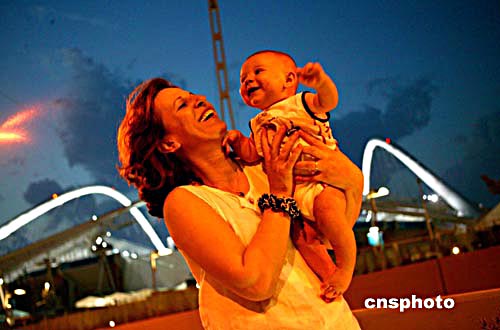 在雅典醫(yī)院工作的護士撒拉瑪抱著三個月大的兒子在奧運會主賽場前歡迎離開雅典108年的奧運回家,她說孩子六個月大時才能起名字,他該有個與奧運有關的名字作紀念。中新社記者:王瑤