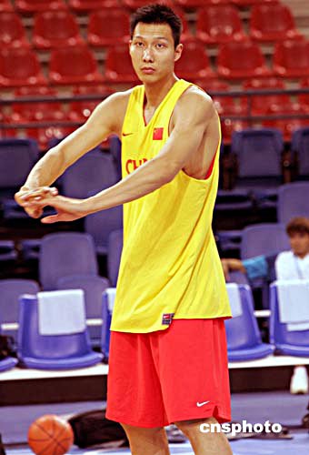 中國(guó)男籃在雅典奧運(yùn)籃球館訓(xùn)練