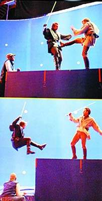 由于在這一集的《星戰(zhàn)前傳》中,少年黑武士阿拉金走上邪道變?yōu)樾皭汉谖涫,所以片中不乏阿拉金以激光劍與師傅奧比溫對(duì)決的場(chǎng)面。為了拍攝這場(chǎng)師徒生死決斗的鏡頭,飾演阿拉金及奧比溫的海登·克里斯滕森及伊萬(wàn)·麥奎格,在電影開(kāi)拍前接受劍術(shù)訓(xùn)練。而“走火入魔”的阿拉金在本集《星戰(zhàn)前傳》中將首次穿上闊別銀幕多年的經(jīng)典黑武士盔甲斗篷,據(jù)說(shuō)這次的黑武士戲服是重新設(shè)計(jì),經(jīng)改良后以便演員穿著。除了前傳的幾位舊有角色外,其中包括在后傳中出現(xiàn)過(guò)的漢蘇魯?shù)闹帧按笮尚伞敝靸旱取?/p>