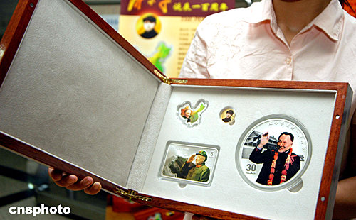由澳大利亞與新西蘭聯(lián)合鑄造發(fā)行的鄧小平誕辰一百周年紀(jì)念彩色金銀幣在常州面世。該套紀(jì)念幣每套一金三銀,金幣采用純度99.99之8克純金鑄造,圖案為“青年鄧小平”;銀幣采用99.9之白銀鑄造,由澳大利亞珀斯鑄幣局聯(lián)同新西蘭庫克群島聯(lián)合鑄造。其中“鄧小平及天安門”重500克,中國共發(fā)行500套。作者:蔣振江