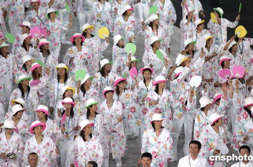 當(dāng)?shù)貢r(shí)間八月十三日晚,第二十八屆奧運(yùn)會(huì)在希臘雅典隆重開幕。圖為日本代表團(tuán)進(jìn)入開幕式會(huì)場。中新社記者:毛建軍