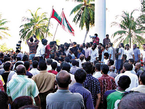 據(jù)大公網(wǎng)綜合報道,馬累前天有大約3千人上街示威,要求民主和釋放政治犯,其后抗議演變?yōu)楸﹣y,部分政府建筑物被縱火焚燒,有4名警員沖突中被捅死。警方發(fā)射催淚彈驅(qū)散示威者,拘捕了約100人。