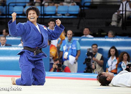 僅用了不到一分鐘的時(shí)間,身高一米五八的冼東妹就將二十三歲的日本選手橫澤由貴壓倒在地,并以“一本”戰(zhàn)勝對(duì)手,為中國(guó)隊(duì)添上第五金。