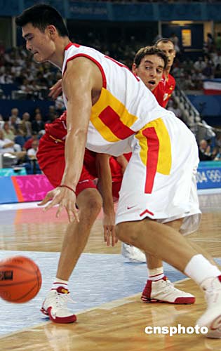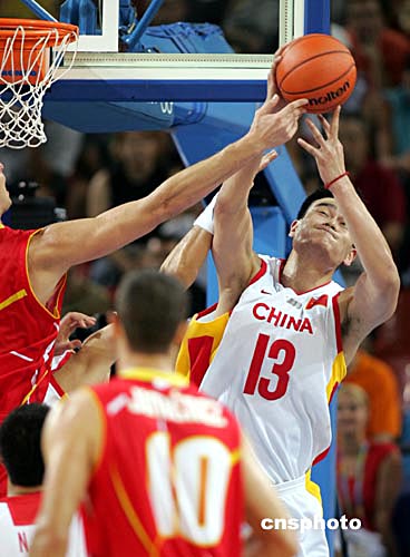 愈戰(zhàn)愈勇的西班牙隊(duì)在最后一節(jié)比賽中依然延續(xù)了瘋狂的進(jìn)攻,將比分差距進(jìn)一步擴(kuò)大。中國(guó)隊(duì)換上巴特爾和姚明雙塔,但場(chǎng)上形勢(shì)仍無(wú)改觀,在比賽還剩下最后四分鐘時(shí),加索爾又一次在姚明頭上扣籃,裁判判姚明阻擋犯規(guī),五次犯規(guī)的姚明無(wú)奈地走出場(chǎng)外。徹底失去希望的中國(guó)隊(duì)最終以五十八比八十三告負(fù)。