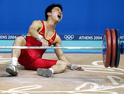 中國參加雅典奧運會男子舉重56公斤級比賽的吳美錦,當?shù)貢r間8月15日經(jīng)過艱苦搏斗終因實力差距而惜敗于土耳其的名將穆特魯,最終獲得銀牌。中新社記者:任晨鳴