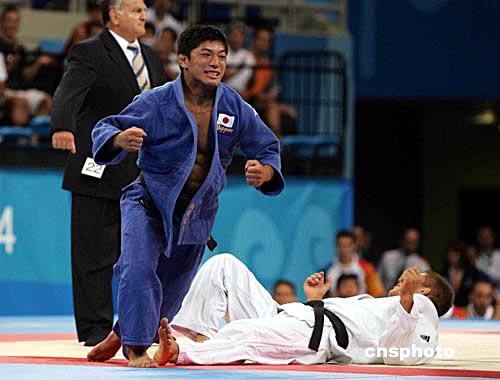 日本選手內(nèi)柴正人于當(dāng)?shù)貢r間八月十五日在雅典獲得第二十八屆奧運會男子六十六公斤級柔道比賽冠軍。中新社記者:毛建軍