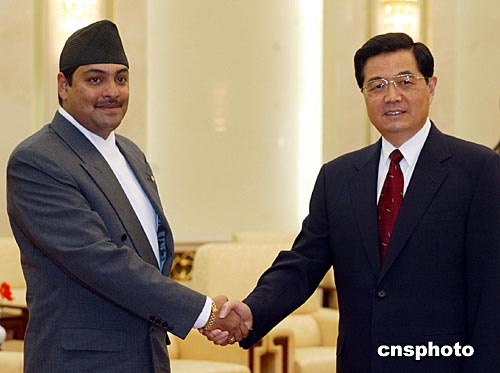 中新社北京八月十六日電(記者齊彬)中國國家主席胡錦濤今天下午在人民大會堂會見了尼泊爾王儲帕拉斯,賓主進(jìn)行了友好的談話。