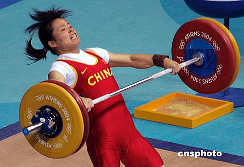 今天的比賽有些驚心動(dòng)魄,不知道天高地厚的李成姬一上來(lái)就一副玩命的架勢(shì)。第一把就要了與陳艷青相同的一百零二點(diǎn)五公斤。不過(guò)她第一次沒(méi)有成功,而陳艷青則輕松舉起,隨后的主動(dòng)權(quán)轉(zhuǎn)到了體重稍輕的陳艷青這一邊。抓舉結(jié)束后,她領(lǐng)先對(duì)手五公斤,隨后的挺舉比賽李成姬已經(jīng)無(wú)力扭轉(zhuǎn)劣勢(shì),最終不敵陳艷青。
