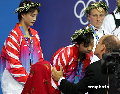 中國(guó)跳水“夢(mèng)之隊(duì)”的勞麗詩(shī)與李婷,雖是第一次參加奧運(yùn)會(huì)但實(shí)力超群,以領(lǐng)先第二名俄羅斯選手十一點(diǎn)二二分的優(yōu)勢(shì)毫無(wú)懸念地奪取女子雙人十米跳臺(tái)冠軍,也為中國(guó)代表團(tuán)贏得了第十枚金牌。遺憾的是王克楠和彭勃沖擊男子雙人三米板金牌過(guò)程中,在領(lǐng)先第二名十二分左右的大好局面下,最后一個(gè)動(dòng)作王克楠起板時(shí)沒(méi)有掌控好出現(xiàn)嚴(yán)重失誤,僅得零分將金牌拱手讓人。在多個(gè)組合出現(xiàn)不同程度失誤的情況下,從未問(wèn)鼎過(guò)跳水頂級(jí)賽事冠軍的東道主希臘組合“撿”到了寶貴的一金。
