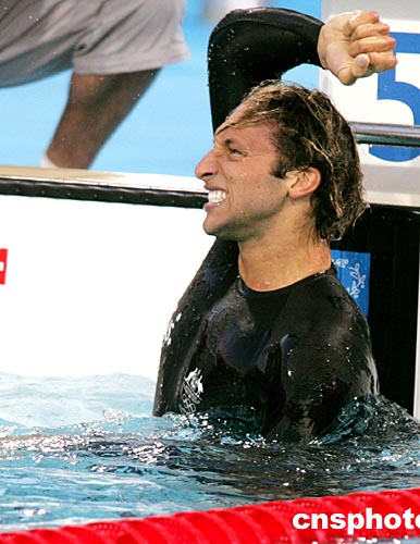 幾乎與第二十八屆奧運(yùn)會(huì)絕緣的澳大利亞飛魚索普,當(dāng)?shù)貢r(shí)間8月16日晚在雅典奧運(yùn)會(huì)男子100米自由決賽中獲得冠軍,再次登上冠軍領(lǐng)獎(jiǎng)臺。中新社記者:任晨鳴