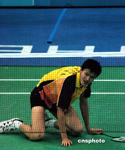 在另外一場(chǎng)比賽中,陳宏以二比一戰(zhàn)勝馬來(lái)西亞新秀李宗偉,為中國(guó)男單保存著最后一線希望,三局的比分是:十五比十一、三比十五和十五比十二。