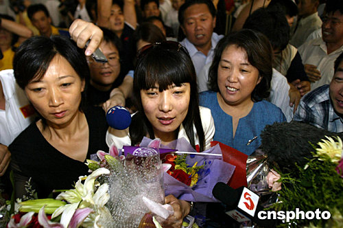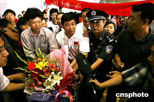 首批回國的運動員包括為中國贏得本屆奧運會首枚金牌的射擊選手杜麗、奧運會六朝元老王義夫和首次參加奧運會就奪得男子10米汽步槍冠軍的19歲小將朱啟南等。