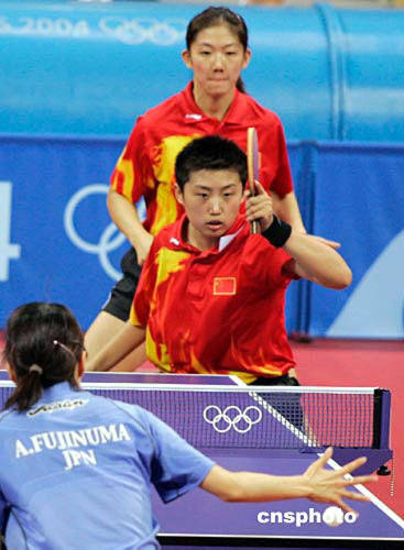 當(dāng)?shù)貢r(shí)間八月十八日,在雅典奧運(yùn)會(huì)乒乓球女雙1/4決賽中,中國(guó)選手郭躍、牛劍鋒以4:2擊敗日本選手福原愛(ài)、梅村禮,晉級(jí)四強(qiáng)。中新社記者:張煒