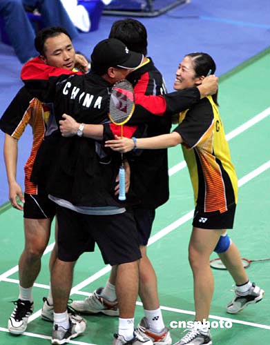 一天之內(nèi)連拿兩金,中國羽毛球已實現(xiàn)“保二”的目標,女雙是總教練李永波“爭三”的最后希望,目前在進入女雙四強的選手中,有三對是中國選手。