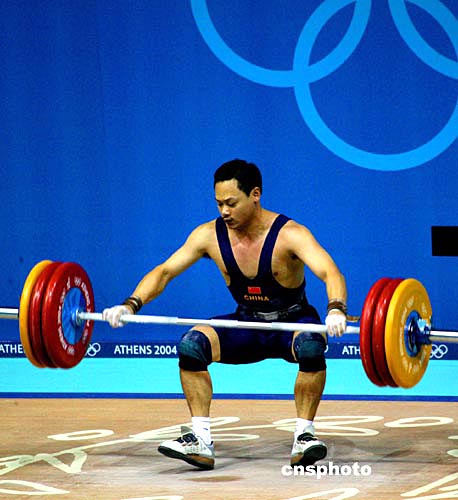 在雅典當?shù)貢r間19日晚舉行的奧運男子舉重77公斤級的決賽中,賽前被人們寄予厚望的奧運衛(wèi)冕冠軍占旭剛三次抓舉均告失利,在比賽還沒過半的時候就提前出局。中新社記者:王瑤