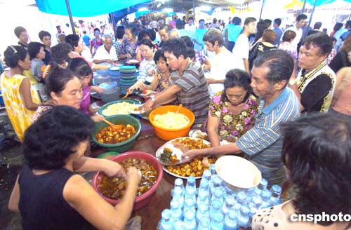300多名入住印度尼西亞棉蘭市華族美德村收容避難的班達(dá)亞齊災(zāi)民,生活甚為艱苦,災(zāi)民每天均在此排隊(duì)用膳,秩序井然。作者:洪少葵