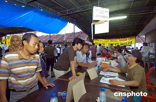 圖:班達亞齊災民在棉蘭市收容所登記避難