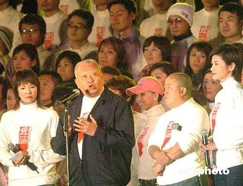 香港特區(qū)行政長官董建華7日晚出席在香港大球場舉行的“愛心無國界”兩岸三地新(加坡)馬(來西亞)演藝界大匯演﹐呼吁香港市民踴躍捐款。中新社記者:趙振清