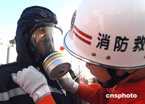 1月10日是“110”報(bào)警服務(wù)臺(tái)建臺(tái)19周年紀(jì)念日,110報(bào)警服務(wù)臺(tái)在北京西單文化廣場(chǎng)舉辦“110”主題宣傳活動(dòng)。圖為消防隊(duì)員在向市民展示防化防核服。中新社記者:張宇