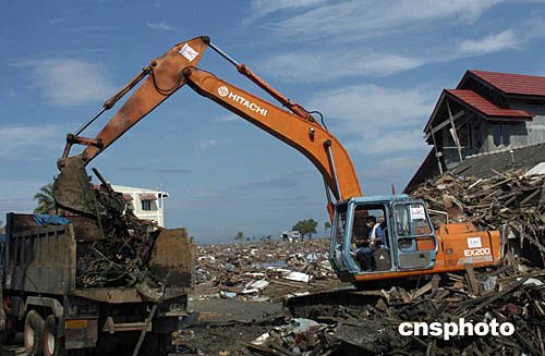 在班達亞齊的人民福利統(tǒng)籌部長阿爾威西哈表示,運抵當?shù)睾土硪皇転?zāi)嚴重城市美拉務(wù)的重型機械已達四百臺,同時亦督促救援人員分成數(shù)班執(zhí)行清除廢墟工作。由昨日起,救援人員會加緊開夜班清除垃圾及尸體。