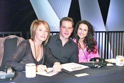其他出席了慈善晚會(huì)的還有杰米·福克斯、娜奧密·華茲、休·格蘭特、詹姆斯·伍茲、安妮特·貝寧、烏瑪·瑟曼、昆汀·塔倫蒂諾、羅伯·洛、小羅伯特·唐尼、羅伯特·德尼羅、德魯·芭莉摩爾和安迪·加西亞等一大批好萊塢知名影星。此外,兩位美國(guó)前總統(tǒng):老布什和比爾·克林頓也一同出場(chǎng),他們受了現(xiàn)任總統(tǒng)小布什的委托,充當(dāng)美國(guó)政府為海嘯災(zāi)區(qū)慈善募捐的先頭部隊(duì)。