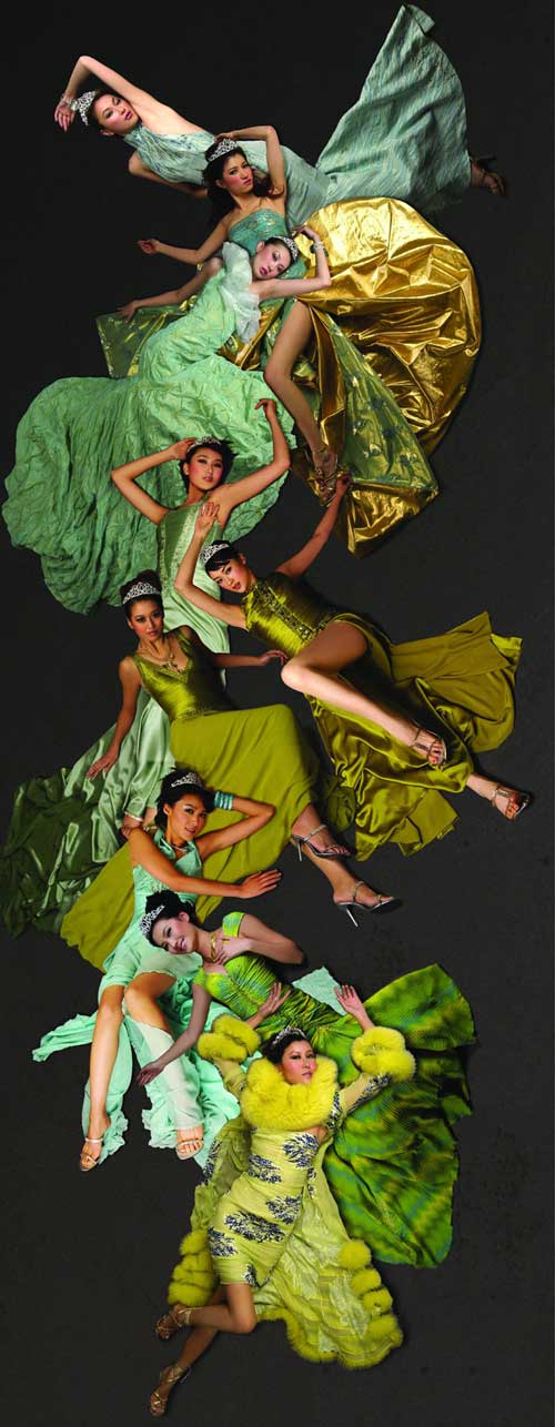 2004中國時(shí)尚大獎(jiǎng)--年度中國最佳職業(yè)時(shí)裝模特,王敏(大)、馬力、韋杰、賈妮妮、欒鳳玲、邊彥陽、劉巾薇、張?zhí)、戴小?由下至上)(圖片提供:黑冰攝影服裝提供:WHITE COLLAT白領(lǐng))