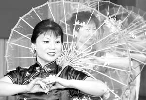 中新網(wǎng)1月19日電 據(jù)人民日報(bào)海外版報(bào)道,本月14日在俄羅斯首都莫斯科,幾名婦女在旅俄華僑華人華商新春招待會上表演花傘舞。