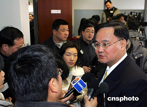 一月十九日,東航與華航在上海簽訂地面代理協(xié)議。圖為華航地勤服務(wù)處副處長表示,兩岸春節(jié)包機(jī)在臺(tái)灣地區(qū)的訂票熱烈程度不比內(nèi)地差,希望兩岸春節(jié)包機(jī)今后成為慣例。作者:潘索菲