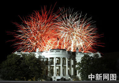 中新社華盛頓一月十九日電(記者余東暉)一月十九日,迎來今冬第一場(chǎng)雪的華盛頓銀裝素裹。入夜,焰火照亮在白宮上空。雖然寒氣襲人,但在白宮安了暖氣的室外平臺(tái)上,布什夫婦與切尼夫婦在音樂伴奏下摩拳擦掌,躊躇滿志。布什說:“歡慶自由,天氣冷又算什么!