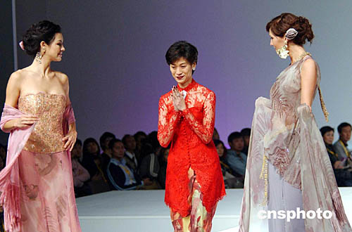 1月21日,在“香港時(shí)裝節(jié)秋冬系列”及“香港國際時(shí)尚薈萃”上,舉辦第二場“國際時(shí)裝設(shè)計(jì)師表演”,圖為印度尼西亞時(shí)裝設(shè)計(jì)師Susie Hedijanto與模特登臺謝幕。作者:洪少葵