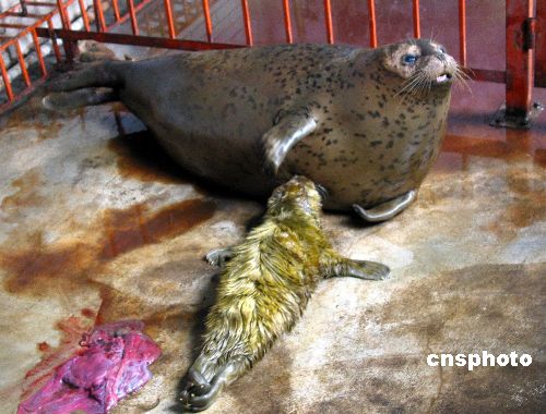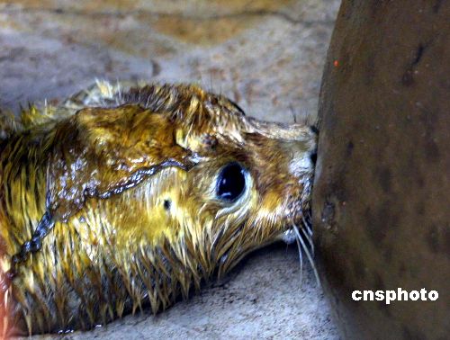 2005年1月24日早晨,在秦皇島海洋歡樂公園的水族館內(nèi),一只出生僅一天的小斑海豹全身覆蓋著土黃色的皮毛,在媽媽的產(chǎn)房?jī)?nèi)享受著母愛。據(jù)了解,這只可愛的小海豹在秦皇島市是人工喂養(yǎng)條件下降生的第一只小海豹,它的媽媽名叫“公主”,是6年前來到港城的,經(jīng)過幾年的人工喂養(yǎng),2004年10月份訓(xùn)養(yǎng)員發(fā)現(xiàn)溫順的公主懷孕了,在為其安排了一間單獨(dú)的產(chǎn)房后,1月23日早晨4點(diǎn)左右時(shí),工作人員聽到公主奇特的叫聲,5點(diǎn)多時(shí),發(fā)現(xiàn)公主身邊多了一只小海豹和一堆胎盤。斑海豹別名海豹、港海豹,海豹科Phocidae,分布主要在渤海、黃海、東海也有發(fā)現,個(gè)別遠(yuǎn)達(dá)南海,屬國(guó)家二級(jí)保護(hù)動(dòng)物。也是惟一在我國(guó)渤海沿岸繁殖的鰭腳類動(dòng)物。學(xué)忠 攝