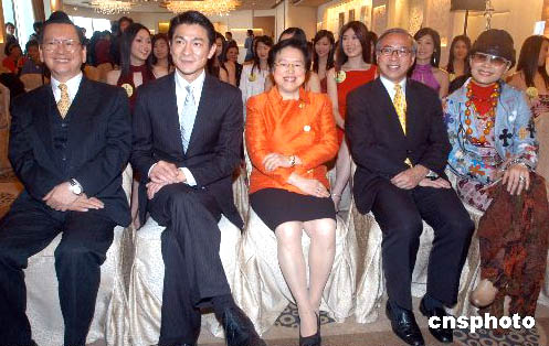 2005年度國際華裔小姐競選大會評判由陳有慶博士、歌影紅星劉德華、譚惠珠太平紳士、胡經(jīng)昌太平紳士及影星葉童(左起)擔(dān)任。