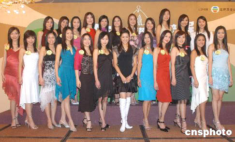 《2005年度國際華裔小姐競選》來自世界各地城市的廿二位參賽佳麗,1月24日在香港首晤大會評判。鄧慶樂 攝